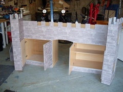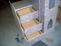 adapting it - the drawers became steps, put another cupoard on, made a couple of MDF towers, painted and wallpapered to finish. Hope she likes it!