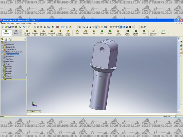 - select hole wizard, make a clearance hole to suit the clevis bolt. (i had to make the centre of the hole and the o.d of the clevis lug concentric