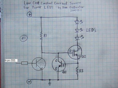 Hmmm, I had seen that design. However it uses resistors to control current which is not ideal for a large LED array. Need a constant current source