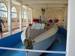 Torpedo exhibited in a swimming pool and a 1900s era Gun Boat built into the hillside a few hundred feet above the lake.