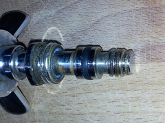 As you can see in the attached photo, the threads on the bottom of the tap 'spindle' have broken off meaning that the tap can not wind the