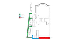 The blue part is original. The green has been accepted as permitted development. The red is the disputed part.