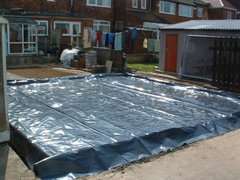 floor. This needs to lay over the sides of your shuttering to be trimmed off later