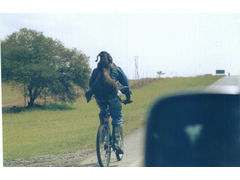 Think the SPCA would take a fit if this was here in the UK Have seen them tied to the tops of busses before.