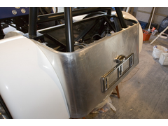 The dash is made from 6mm MDF trimmed in perforated blue leather. Mmmm Cow! Gear level gater plus handbrake gater to be made form the same