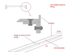 As for the hinged area you can get heavy duty piano hinge but someone cleverer than me would need to work out if the shear strength og the hinge pin