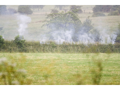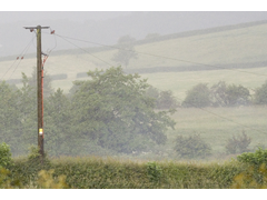 less than 200 yards from our house. The tops of the poles exploded with a mass of white sparks and the fallen lines set fire to about 50 yards of