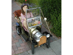 Skinned in brass, 200 Watt motor, radio, full roof,working lights. No. 2 daughter shown was a big too big for it.