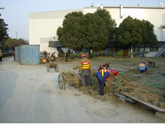 And here are the landscape gardeners out side, must have shifted 50 ton of top soil (clay) with there trendy barrows n shovels, every job out here is