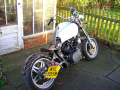 XV1000 motor with chopped frame, monkey hangers single carb conversion and stuff.
