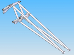 Anyway heres a cad shot of the girder forks... based on 40deg rake and for use with a narrow glide wheel. But a doddle to modify. Need to finish off