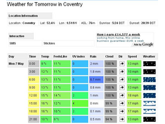 they said that it would rain in coventry on sat and all we had here was nice sunshine, lets hope that they are wrong again!