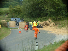 I went to Castle Hill hill climb yesterday. This shows what happens when you leave braking just that little bit late. I was talking to the driver
