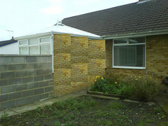 i were going to keep the house long term i would just get on with building a wall or a solid backed conservatory but i need to be careful as to not