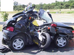 I have had the experience (in 1977!) of flying into the side of a car at 40 mph. It was a citroen ami (sort of lower version dyane!) that came out a
