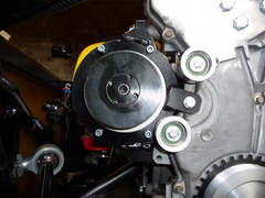 Make alternator bracket, also need to get hold of a small denso type alternator to fit on passenger side of engine with a 6 groove pulley on.