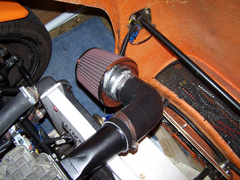 Next improvement was moving the air filter and air flow meter that was behind the radiator sucking in hot air, to in front of the radiator. This seems