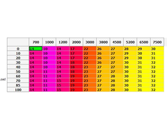 I suggest 28 at 4000, 32 at 7000