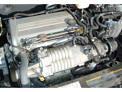 intercooler for maximum efficiency. With up to 12 pounds of boost from the Eaton blower, the force-fed engine develops a healthy 205 horsepower and