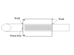 welded to this tube. I cut two 5" dia discs from 4mm plate, with 2" holes in, one was slid down the perf tube to the join and welded in