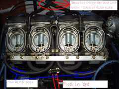 This is an anotated photo of how my ZZR carbs were plumbed up.
