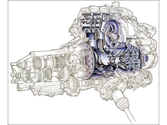 I think the closest will be the Audi V6 engine, with the FWD (2WD) gearbox. The driveshafts appear to leave the gearbox casing just behind the