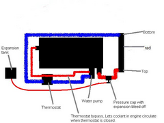 am forcing it back to the header? I am sure that the bottom pipe from the header should loop back to the bottom hose near the rad.