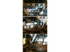 As the std air box has been removed it now has three pipes connected to the carbs, two small bore ones either side and one big bore pipe T piece