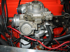 to dent the rocker cover to allow that and move the linkage to the other side but it works o.k. You don't need the choke, just nurse it till it