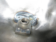 My threaded nut is as David describes, attached to a metal tab which is spot welded in place, rather than brazed. It looks like the metal about 1mm