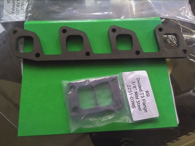 And last but not least my flanges arrived from RSII, however I didn't realise that the T3 flange was a split style, but think it might not seal properly but will be handy to have if I uprate my turbo at a later date. The flange is a nice bit of kit and very happy with the quality of it, both inlcuding postage was $111.88, which is about £69 at the minute. (all the money bits are for a record for myself in the future lol) Picture below:-