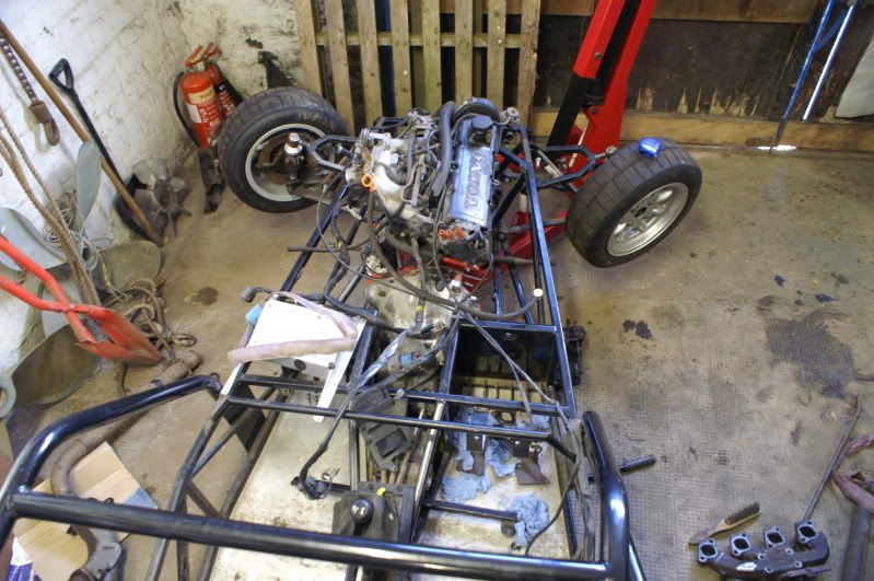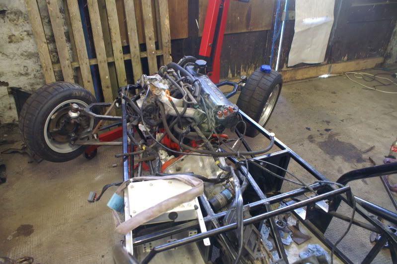 Well managed to get into the garage with my DSLR today and took a few pictures of the chassis with the engine trial fitted, waiting on the V8 Land Rover mounts to arrive but you get the general idea of the head scratching and fun ahead