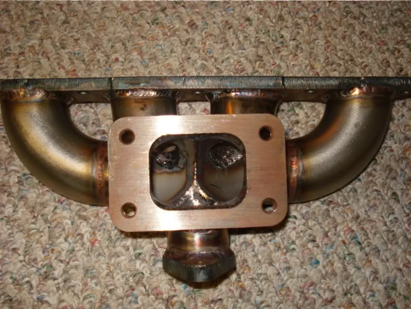 Now I'm going to leave building an equal length manifold for the moment, it will take up too much important room under my very small and packed bonnet. So instead of that and also instead of a log, I will try and make a Splog (Split LOG) manifold that flows better than a normal log and still allows fast spooling of the turbo. The splog will hopefully look something like the one below, but with the turbo Top Mounted instead of bottom mounted.