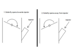 injector). Is there any impact on fuel-air mixing, idling or small throttle input running by changing the direction the butterfly opens (fig. 2)?