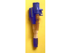 Return from the regulator goes in through the semi-transparent brown pipe does a u-turn and out through the larger bore grey pipe. The