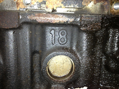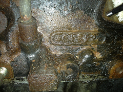 This is the only other marking I can see on the block, which is down next to where the oil dipstick tube pushes into the engine. Highly coroded, I