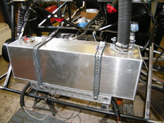 The base of the tank is located in a cradle made from ally angle, straps in ally strip and a top brace in ally angle, that also forms the base of the