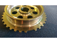 the flywheel comes in at 3.4kg roughly half the weight of the original and the pulley 660g, 1 kg lighter than standard and more importantly has the