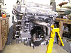The Jag version of the Duratec V6 has an awkward combined engine mount and oil filter take off plate on the left hand side of the block which gets in