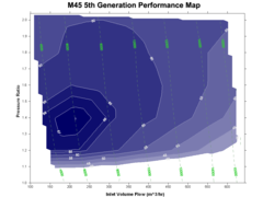 this) and the mashing of the air at the rotors. Both of these will be entirely dependent on the pressure ratio and RPM required for the