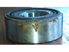 I removed the old bearings by grinding 2 shallow grooves on the outer ring, in line with the axle, roughly 180 degrees apart. Then I wrapped the