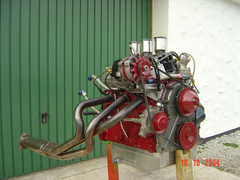 The Alfa V6 i'm using has three down pipes each side that are 135mm apart (centre to centre). The original ones are cast and very heavy. The