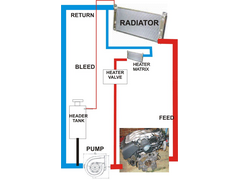 Steve, I was under the impression that feeding the top of the rad will encourage air locks. My diagram shows it fed from the bottom with the heater tee'd from the pump to maximise on pressure to get the heater warmed up quicker (it's a theory anyway) The Duratec has a separate water jacket around the oil filter which I have taken out of circuit for simplicity but I might re-use it if I feel the need - I would put this in the circuit between pump and heater to get as much heat as possible, shutting it off with a valve (also in the feed) when not required. I can then use the heater for cold air flow in the summer.