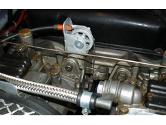 To reduce the angle through which the accelerator cable goes, I made a small pulley for the cable.