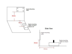 I've drawn a template - the forward facing face is the engine in the bay and the lower face is the chassis rail with engine mount on top.