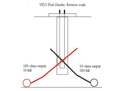 when gauge reads zero. This has left me with a small amount of fuel still in bottom of tank. Then lift the sender till it reads max and modify the