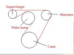 belt, move the supercharger forward and drive it from the front pully - this will give much more belt wrap - in the photo it looks like the