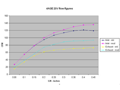 I've just spent a chuck of money on my 4AGE 20V head and the results are shown in the chart below. The exhaust ports were quite restrictive hence