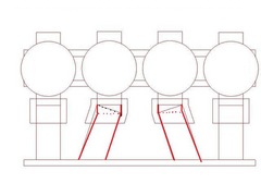 You need nice lazy S bends for the inner two runners. Or get them re-spaced so that all runners are straight. Gasflow doesn't do corners.