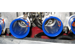 The venturis have a bit pushed in the end which determines their size, its the smaller end which points to the outside of the carbs.